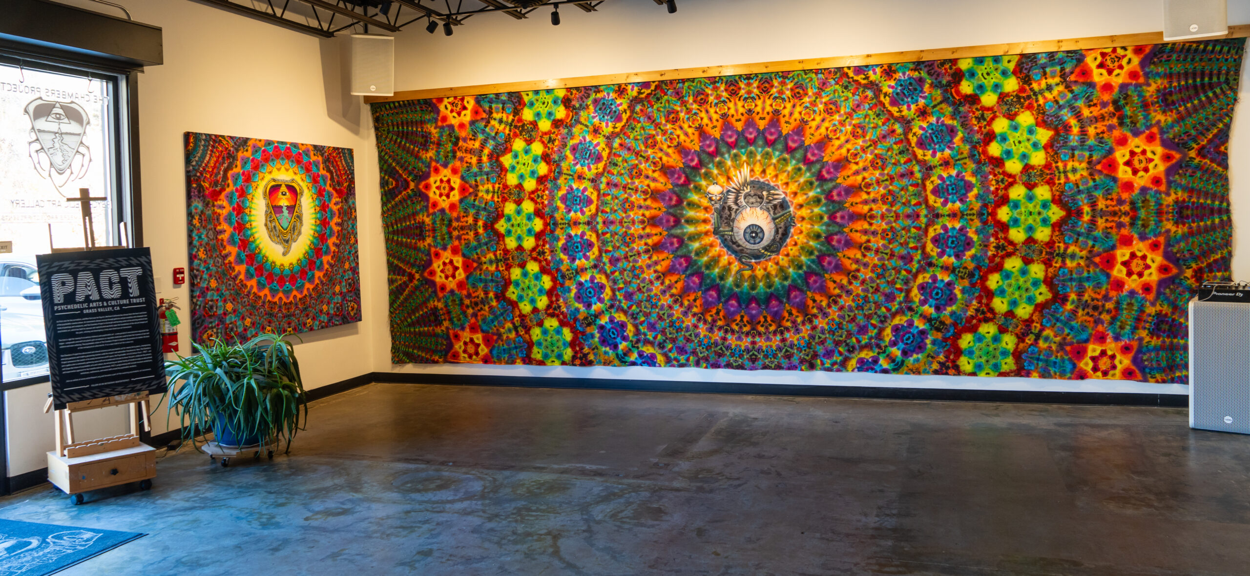A new psychedelic installation of cutting-edge tie-dye by artist Harry Hart at The Chambers Project in Grass Valley, California