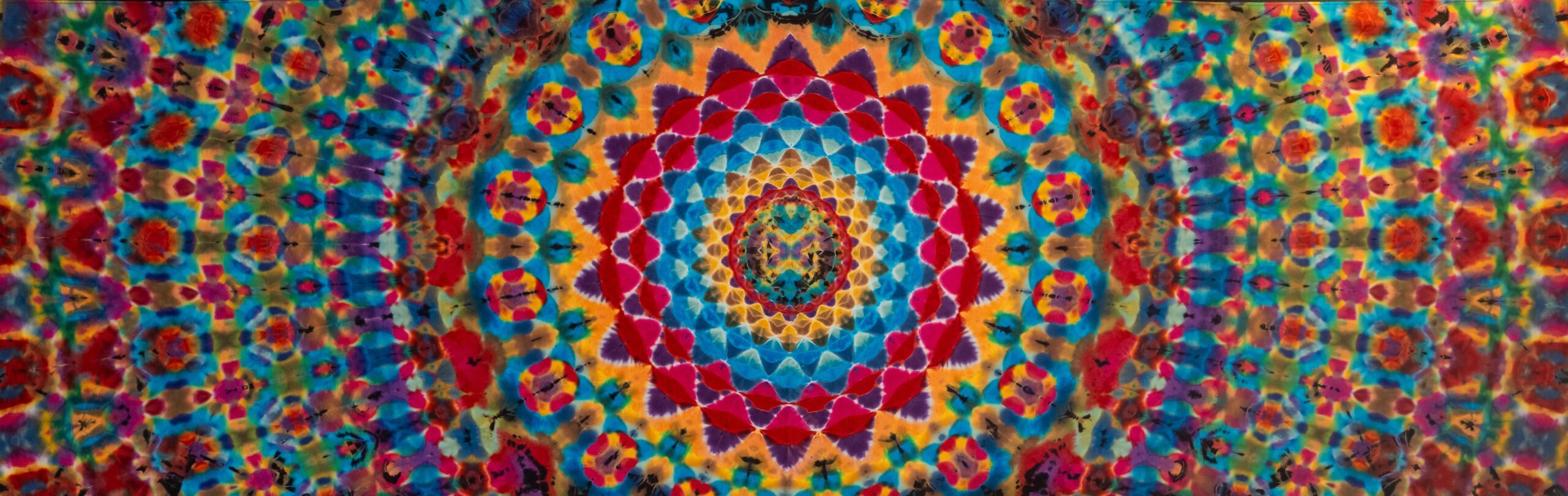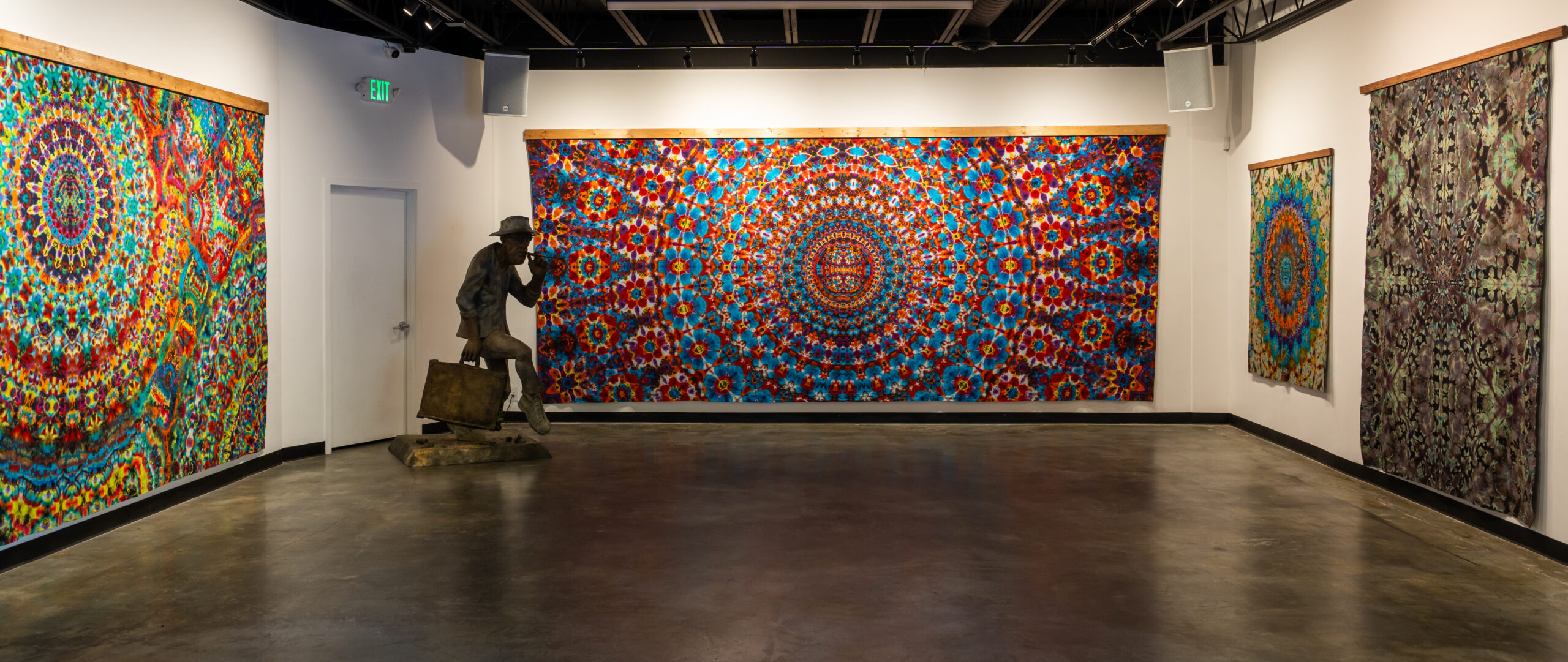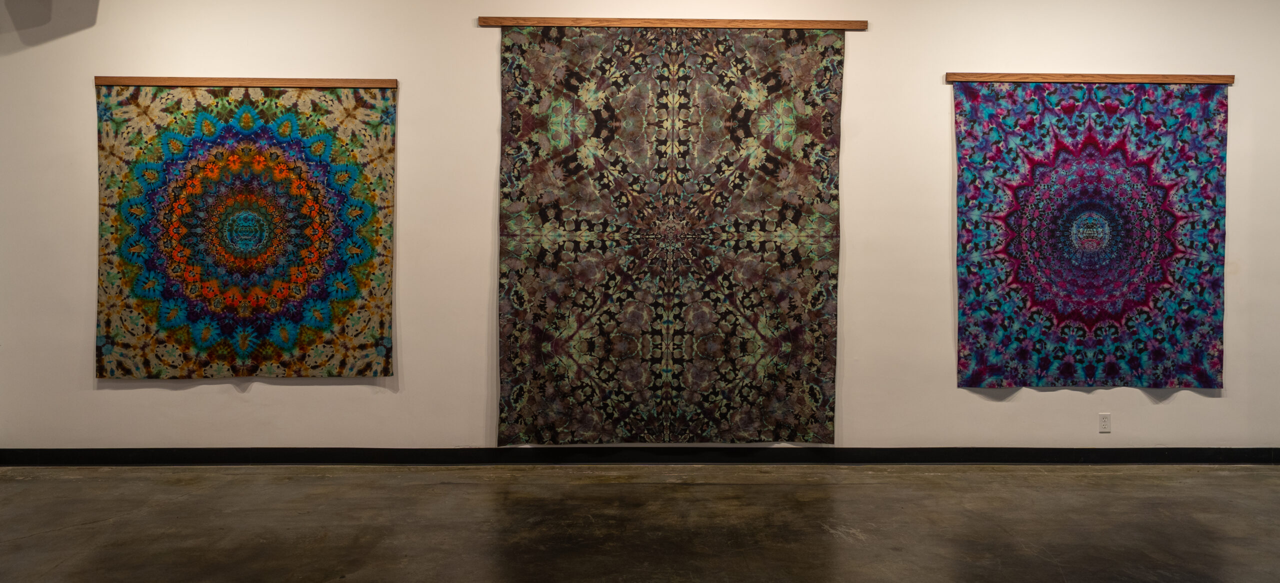 Chambers sees Hart’s exhibit as a lead-in to the spectacular exhibit of art and artifacts of the Grateful Dead he is opening in December. The band frequently performed live sets in front of tie-dyed backdrops created by Courtenay Pollock. Chambers commented, “While tie-dye has been around far longer than the Grateful Dead, I feel it was the band’s culture and community that put the countercultural and underground spotlight on it. Harry Hart’s show felt like a proper way to lead into our ‘60 Years of the Grateful Dead’ retrospective exhibit in December, when we will further examine many more of the creative fractals that exploded through the culture of the Grateful Dead.”