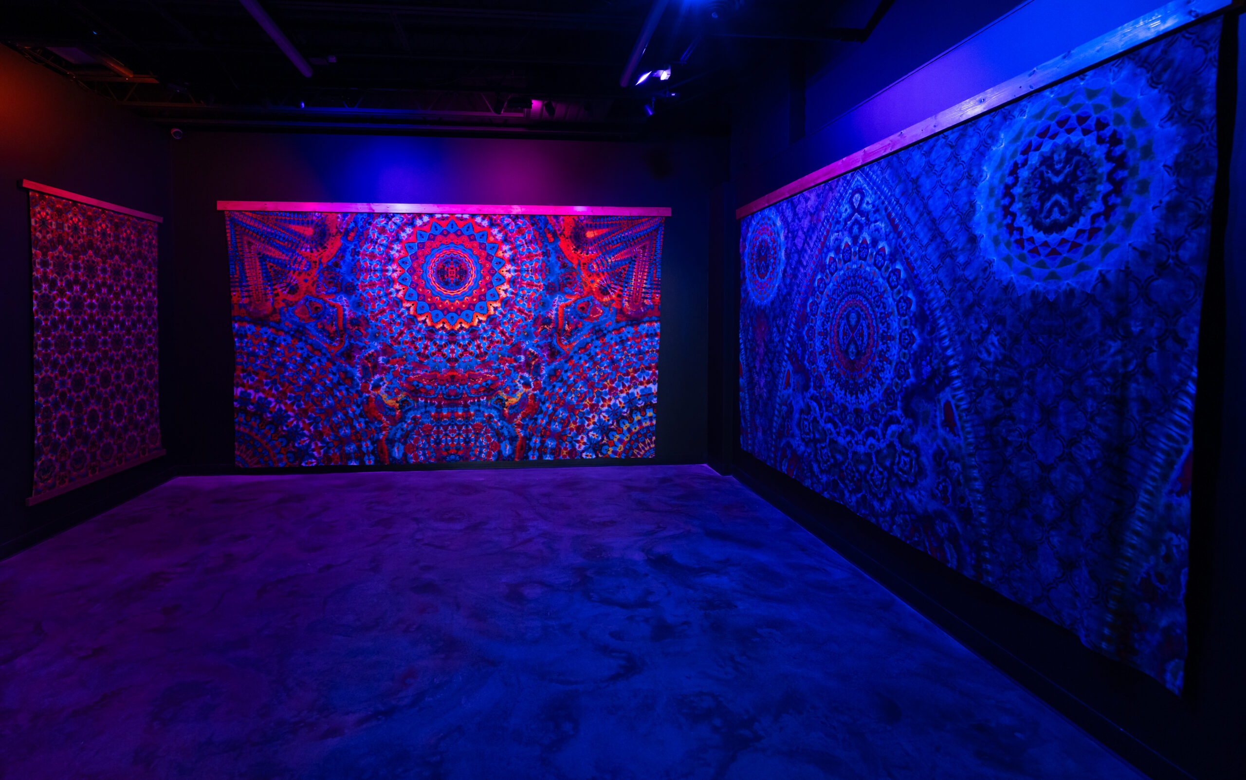 At the opening, some of his largest dyes will be lit under LED lights smoothly shifting through the color spectrum, giving them an unusual sense of life and movement. “It’s going to give people a feeling I don’t think has been captured before,” he said, “I’m definitely not the first person to come across using RGB LED’s to transition pigments from one color spectrum to the other, but there’s innovation in the way I’ve created pieces of art with intention for light.”