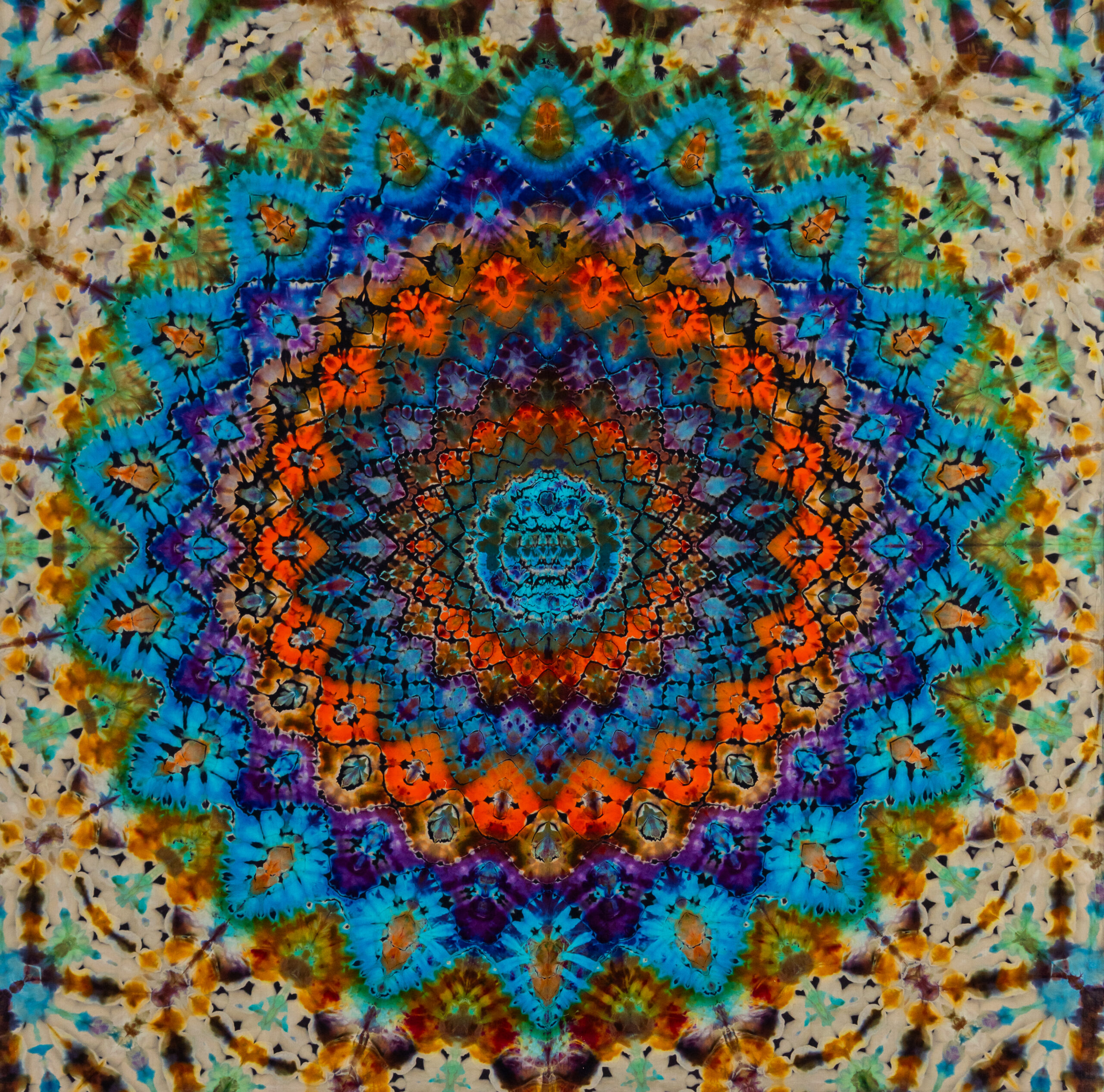 Pioneering owner and curator Brian Chambers has succeeded in establishing the Chambers Project as the heart and soul of an astonishing flood of creative work created by historic and contemporary psychedelic artists. He promises his internationally famed gallery will be covered in “…head to toe tie-dye. Tie-dye is a favorite medium at The Chambers Project and over the years we have done countless limited-edition tie-dyed shirts. The response has always been very strong. With Harry and I sharing the same Southern roots and love of Grateful Dead culture this is a prime opportunity to elevate the medium to a higher level. ‘Dead to the Core’ is our first all tie-dyed show, and it’s definitely something I’m looking forward to exploring more in the future.”